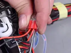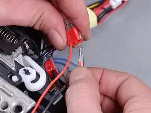 Отстегните красный и чёрный провода соленоида от боковой части модуля управления.