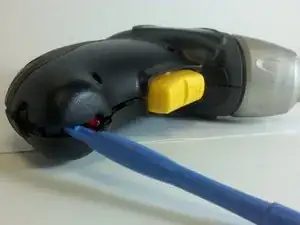 Используйте пластиковый инструмент для разделения (или монтажную лопатку), чтобы аккуратно отжать верхнюю и нижнюю половинки пластикового корпуса драйвера.