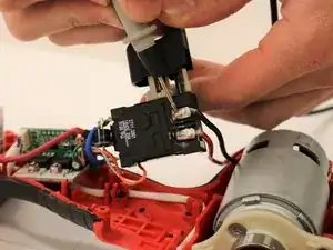Найдите красный и черный провод, идущий от задней части мотора к механизму спускового крючка.