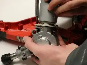 Удалите два винта, соединяющих мотор с коробкой передач, с помощью отвертки Torx T15.