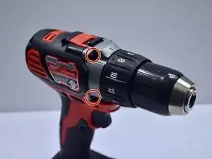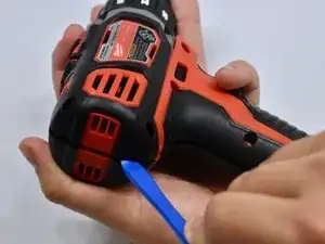 Снимите наклейку внизу ручки дрели.