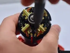 Удалите мотор из корпуса и открутите два винта 8 мм с помощью отвертки Torx T3 на задней стороне мотора.