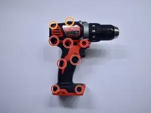 Удалите семь винтов 18 мм с помощью отвертки Torx T3 в области ручки корпуса.