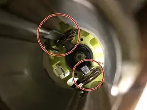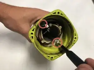 Отверткой Phillips #1 снимите два винта, крепящие мотор.