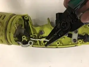 Срежьте белый провод, находящийся под курком в задней поворачивающейся рукоятке, стриппером для проводов.