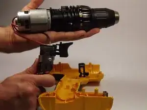 Уложите дрель на бок и аккуратно снимите верхнюю половину.
