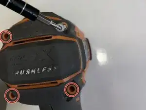 Удалите два винта M3.5x10 мм с задней части шуруповерта под торцевой крышкой.