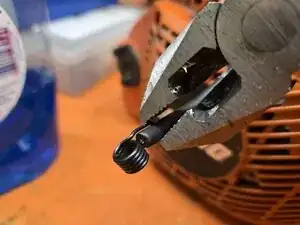 При сборке установите щуп зазора зажигания, чтобы обеспечить расстояние 0,35 мм между катушкой и магнитом.
