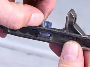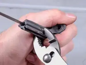 Используйте плоскогубцы или плоскую отвёртку, чтобы выпрямить фиксирующую скобу, удерживающую лезвие.