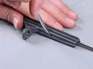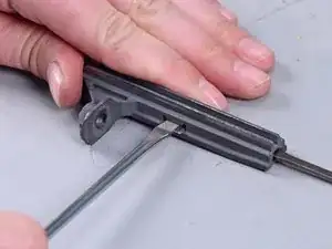 Вставьте плоскую отвёртку в стык корпуса над узлом направляющего.