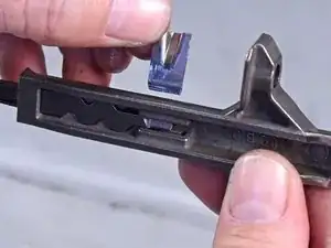 Возьмите узел направляющего за заднюю часть и потяните его прямо из инструмента.