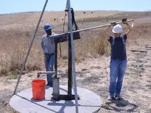 Будьте осторожны, чтобы не уронить основной направляющий башмак подъёмной трубы, так как это может повредить цилиндр насоса.