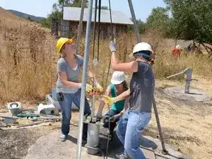 Задача оператора каната — сильно тянуть за канат, чтобы убрать провис, и объявить, что он «держит», чтобы оператор тисков знал, что вес стояка поддерживается.
