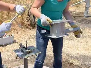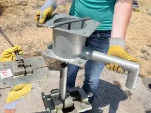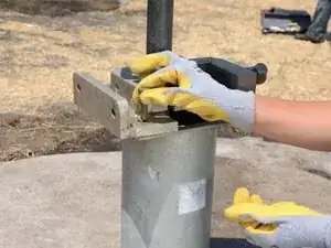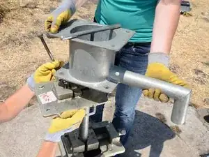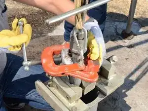 Закрепите тиски для трубы к верхнему фланцу двумя болтами и гайками, чтобы зафиксировать тиски на месте.