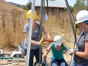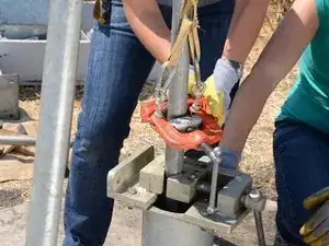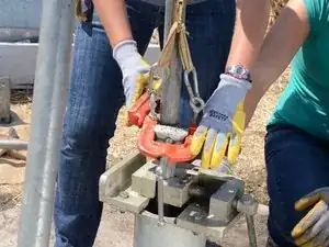 Повторите подъём: ослабьте тисок и потяните канат, чтобы поднять стояк ещё на несколько футов.