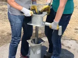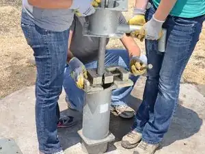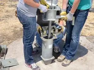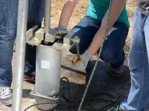 Следующая операция требует участия двух человек. Если вы попытаетесь сделать это в одиночку, вы рискуете получить травму и повредить насос.