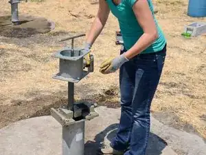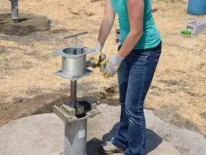 Перед выполнением любых ремонтов проведите водный тест насоса, поднимая и опуская рукоятку на полные 40 ходов. Правильно работающий насос должен давать более 10 литров.
