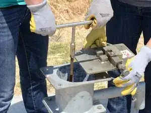 Снимите два болта и гайки со стороны рукоятки.