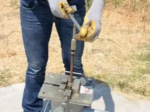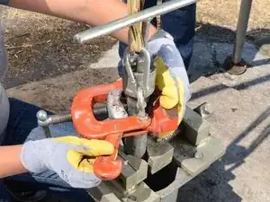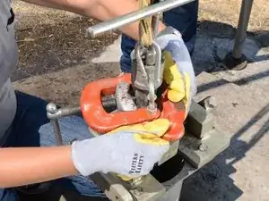 Когда муфта пройдёт через тисок, затяните тисок.