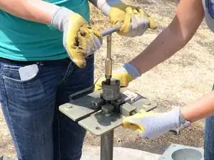 Оператор тисков затем объявляет «затягиваю» и затягивает тисок.