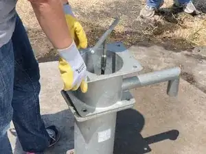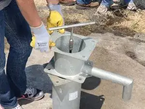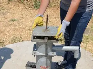 Прикрутите Т-рукоятку обратно на верх штока насоса.