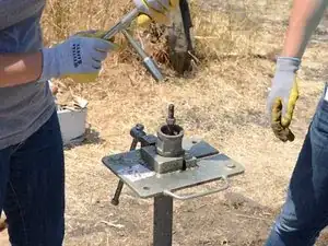 Отвинтите Т-рукоятку от штока насоса и снимите её.