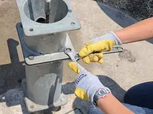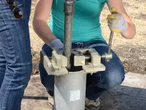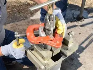 Пусть третье лицо разместит тиски для трубы вокруг основного стояка, на верхнем фланце.