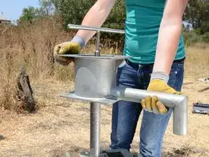 Навинтите Т-образную рукоятку на верхнюю часть штока насоса. Подтяните Т-рукоятку вплотную к контргайке.