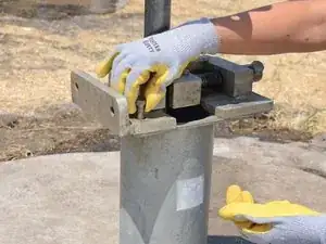 Затяните тиски для штока на штоке насоса.