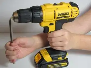 Может потребоваться несколько ударов, но патрон легко прокрутится, как только освободится от резьбы шпинделя дрели. Используйте шестигранный ключ, чтобы повернуть патрон против часовой стрелки, пока он не отделится от дрели.