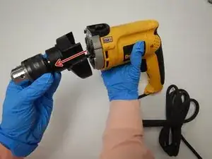 Осторожно отделите патрон и пластиковый корпус от корпуса дрели.