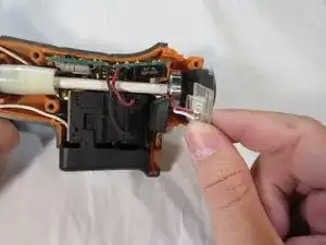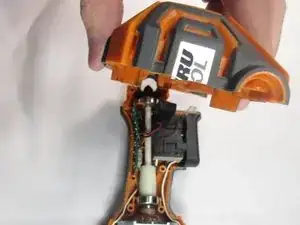 После разделения устройства осторожно потяните за узел триггера, чтобы извлечь его с одной стороны корпуса.