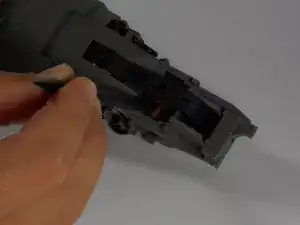 Используя лопатку, аккуратно вытолкните красный переключатель питания из устройства.