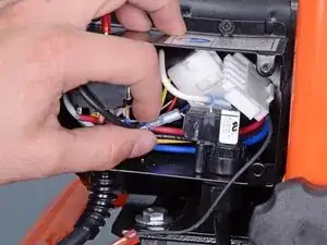 Снимите чёрный провод, потянув его прямо с наконечника-«мамы» на диафрагме силового переключателя.