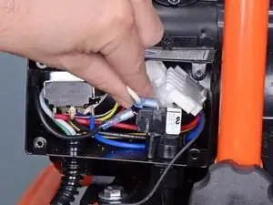 Снимите белый провод, потянув его прямо с наконечника-«мамы» на диафрагме силового переключателя.