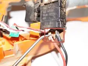 Снимите пластиковые защитные накладки с красного и чёрного проводов на блоке переключателя.