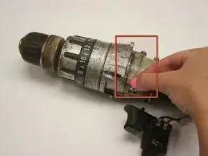Используя крестовую отвертку Phillips #2, удалите пять винтов, крепящих рукоятку дрели к корпусу.