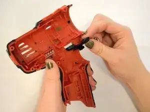 Держите корпус в одной руке и потяните конец сломанного переключателя вперед/назад из корпуса.