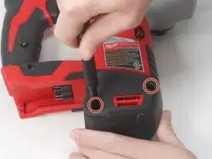 Удалите два винта длиной 20.3 мм с правой стороны основания дрели с помощью отвертки Torx T3.