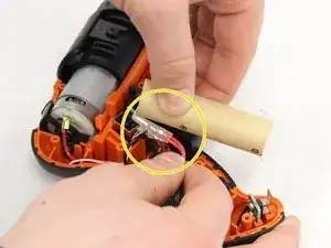 Хорошей практикой будет сначала отключить верхнее подключение аккумулятора, как показано на третьем изображении — это первый шаг при замене любых компонентов этой отвёртки.