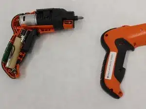 Плата курка/переключателя является внутренним компонентом и требует разборки корпуса отвёртки. Из‑за разборки корпуса потребуется несколько специальных инструментов, перечисленных в руководстве по замене внешнего корпуса. Обратитесь к руководству по замене внешнего корпуса для инструкций по снятию корпуса. Также соблюдайте осторожность при работе внутри отвёртки — всегда отключайте аккумулятор перед заменой каких‑либо компонентов. Для замены платы курка/переключателя также потребуются паяльник и базовые навыки пайки.