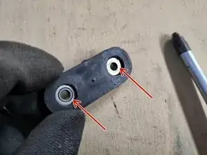 Удалите соединительную штангу с приводного рычага. Прокладка на обратной стороне верхнего соединения выпадет в этот момент.