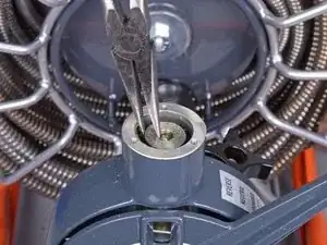 С помощью плоскогубцев подденьте и выньте прижимную пружинную пластину.