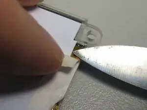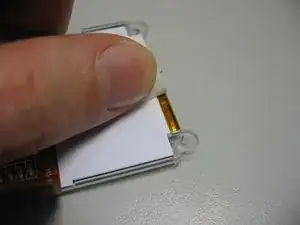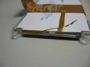 Освободите разъём дисплея, приподняв маленькие коричневые защёлки по обеим сторонам разъёма лопаточкой или подобным инструментом.