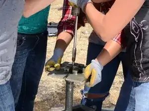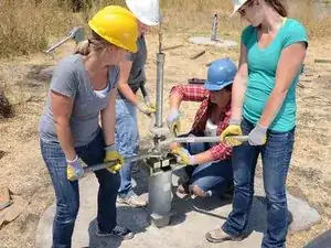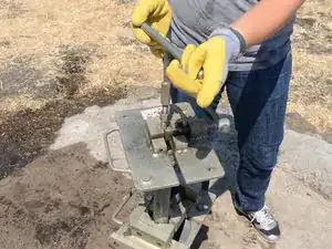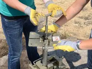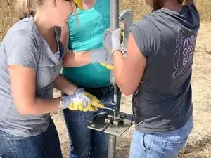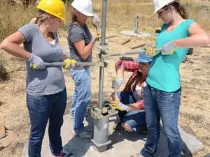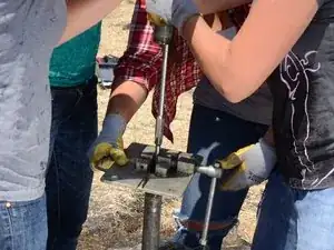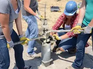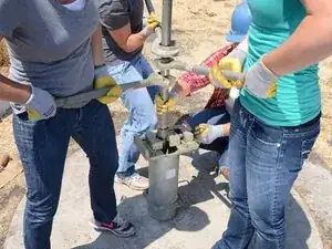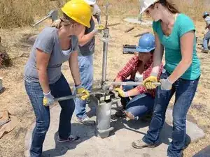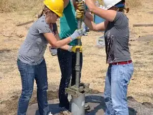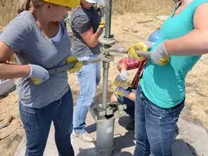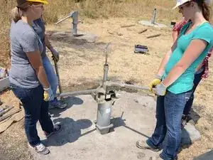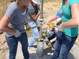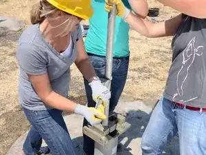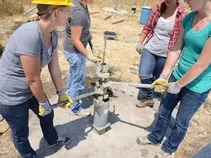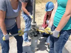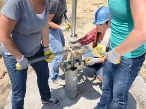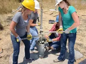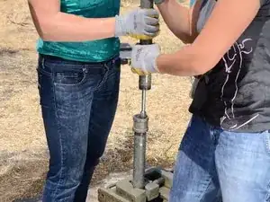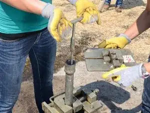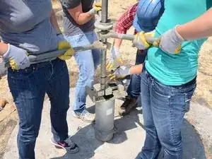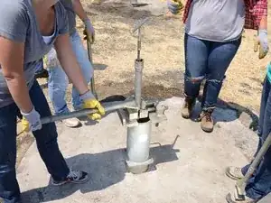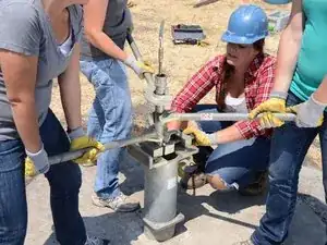 Накрутите Т-образную ручку на только что открывшуюся верхнюю часть насосного штока.