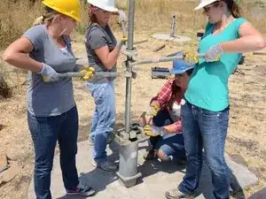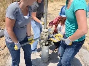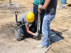 Будьте очень осторожны и держите трубу как можно более вертикально. Если она согнется или упадет, это может повредить насосный шток или травмировать кого-то. Всегда имейте как минимум двоих человек, удерживающих трубу.