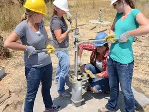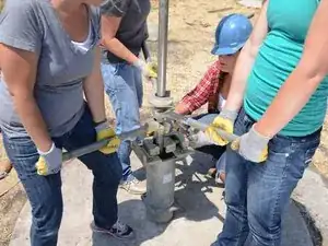 Последний участок трубы основного подъемника будет иметь насосный цилиндр, прикрепленный к низу.