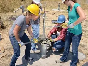 Перед выполнением каких-либо ремонтных работ проведите проверку насоса, подняв и опуская ручку на полные 40 раз. Правильно функционирующий насос выдаст более 10 литров.