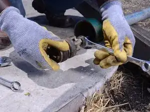 Будьте осторожны — труба, вероятно, полна воды, которая будет течь из-под муфты, когда вы будете откручивать трубу.