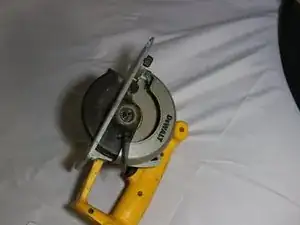 Удалите круговую гайку, которая удерживает полотно пилы на месте. Она легко снимется.